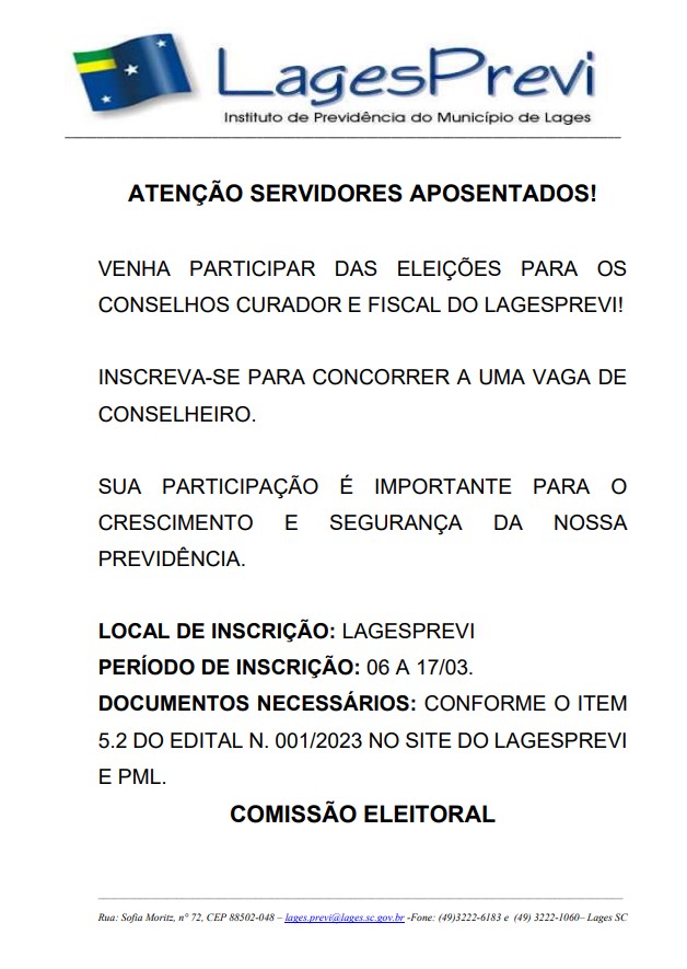 Nesta quarta-feira dia 16 de março, representantes do LAGESPREVI participaram da audiência pública promovida pelo poder Legislativo de Lages, em pauta o projeto de Lei complementar 030/2021, da reforma previdenciária que se aplicará aos servidores públicos do município.